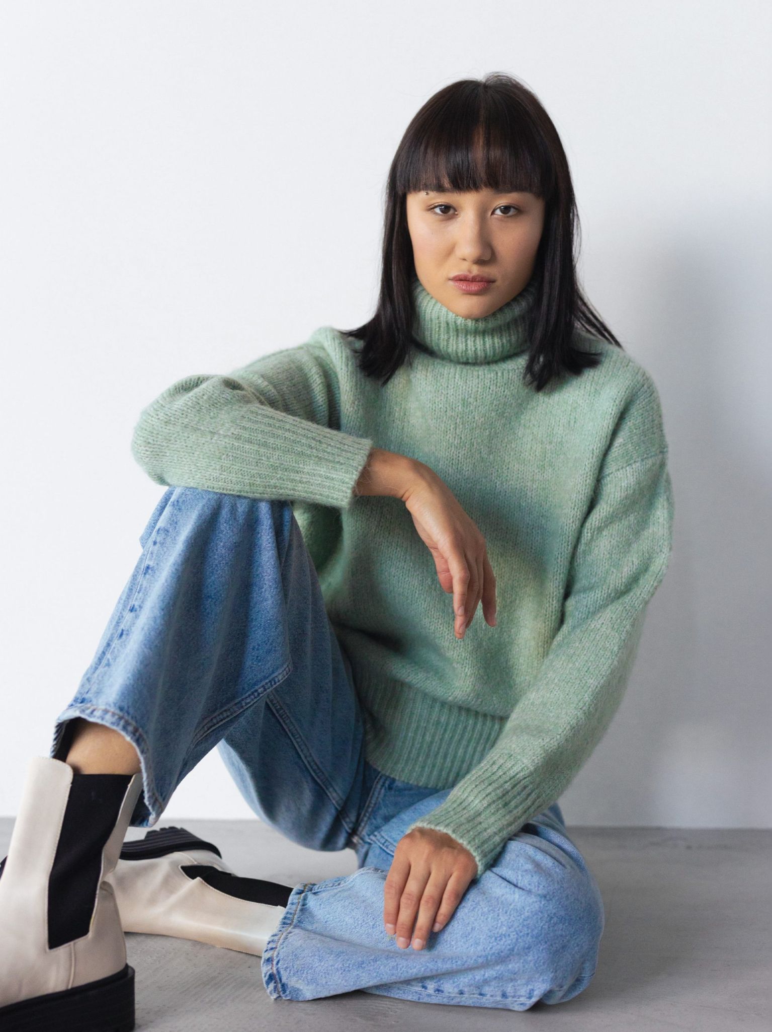ژاکت گره دار یقه بلند